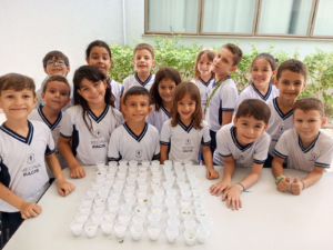 Com esses materiais, produziram sal temperado e velas aromáticas, que foram comercializados durante a Mostra Pedagógica. O valor arrecadado foi destinado à ação solidária, movida pelo amor, respeito e sensibilidade, sementes que cultivamos no processo de ensino-aprendizagem.